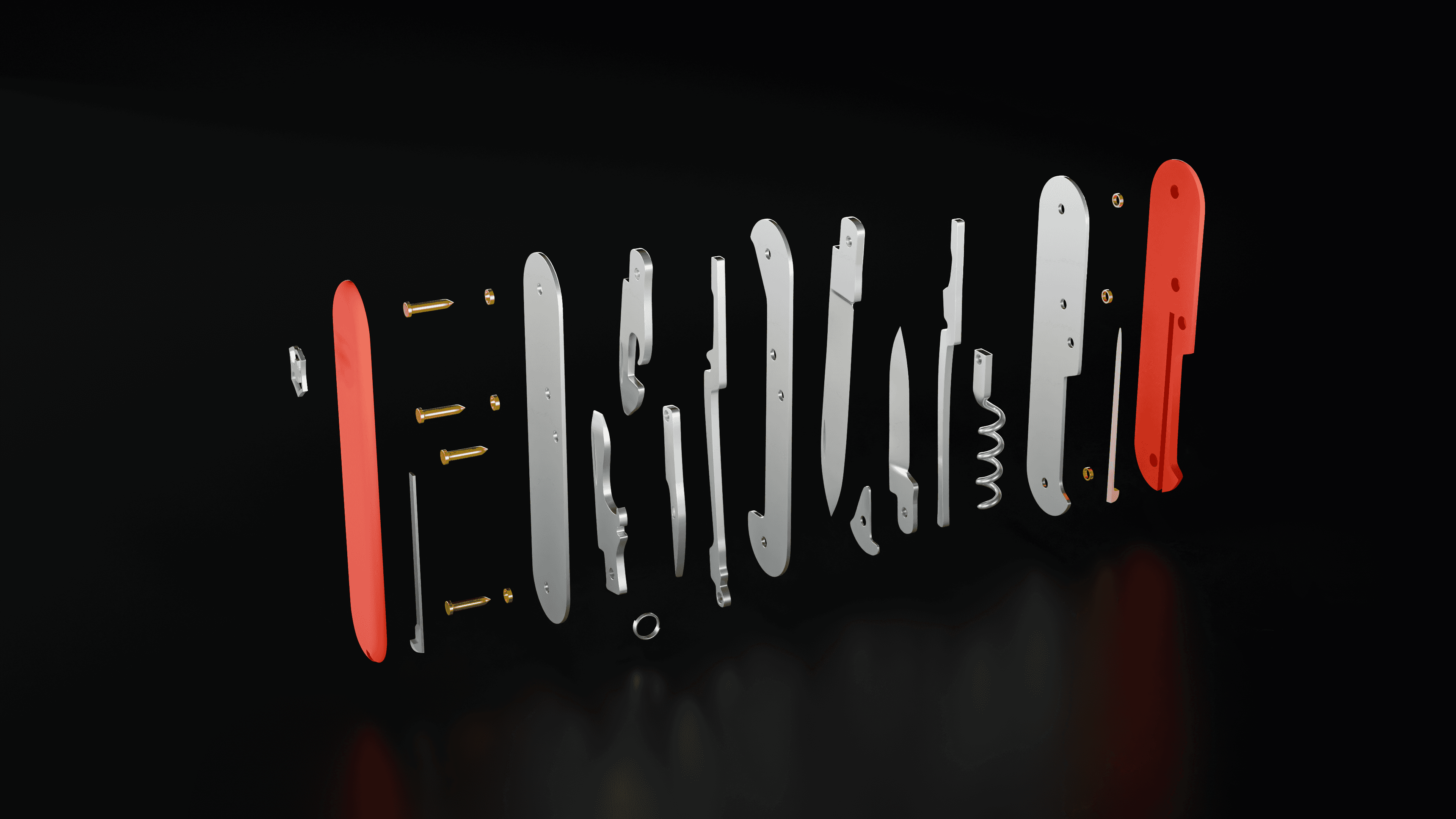 Swiss Knife ist eine in Blender erstellte Produktvisualisierung. Dazu wurde das Messer zunächst vollständig modelliert und anschließend in einer Animation inszeniert. Das Ziel bestand darin, die einzelnen Bauteile in einer Explosionsdarstellung aufzufächern. Dadurch können die Bestandteile des Produkts einfach und schnell erfasst werden. Um die Animation noch ansprechender und eindrucksvoller zu gestalten, wurde die Visualisierung durch Sounddesign ergänzt. Die Arbeit eignet sich als visuelle Produktpräsentation und kann beispielsweise für Werbung oder Vorführungen verwendet werden.